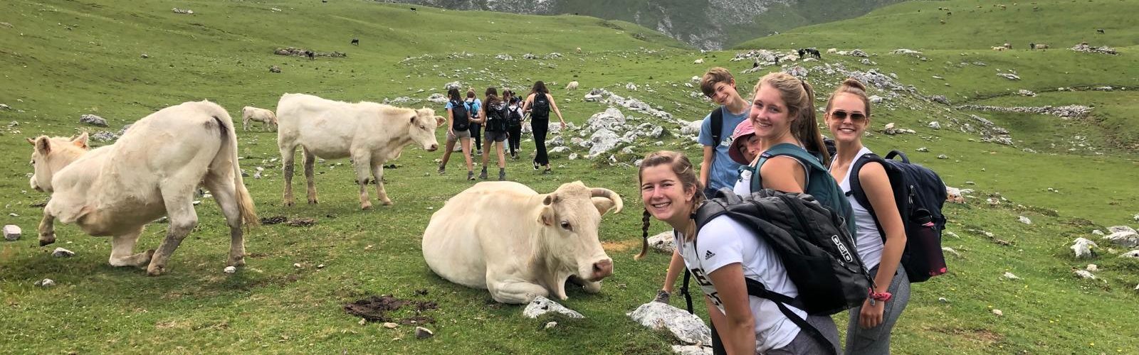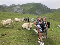 Today we hiked the breathtaking Picos de Europa. We rode a gondola to the top of the mountain and enjoyed the stunning views before starting our hike. The hills were bright green and there were beautiful flowers dotting the landscape. At times we were above the clouds and we could see them rolling through the mountains. Cows and sheep were also enjoying the lush landscape and when we stopped for lunch we were approached by a group of horses. We can’t wait for the next adventure!